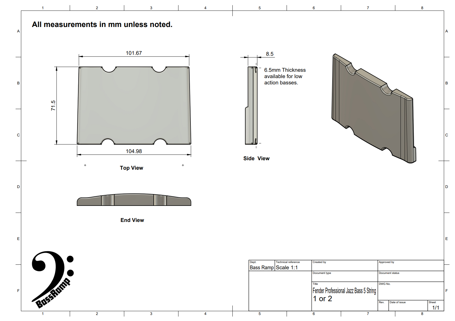 Enhance your playing comfort and technique with our bass finger ramp, designed specifically for the Fender Professional Jazz Bass 5 String. Engineered to match the neck radius of your Fender Jazz bass for a seamless, ergonomic playing experience. Crafted using high-quality 3D printing technology, this ramp offers a precision fit.