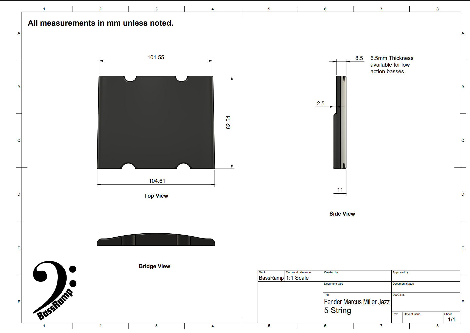 8.5mm (standard) and 6.5mm (low action) ramp thickness available.