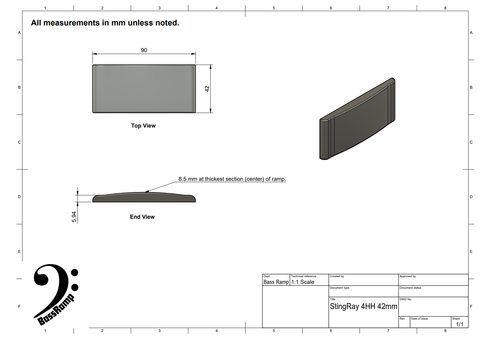 Enhance your playing comfort and technique with our bass finger ramp, designed specifically for the StingRay 4HH bass. Engineered to match the neck radius of your StingRay 4HH bass for a seamless, ergonomic playing experience. Crafted using high-quality 3D printing technology, this ramp offers a precision fit.