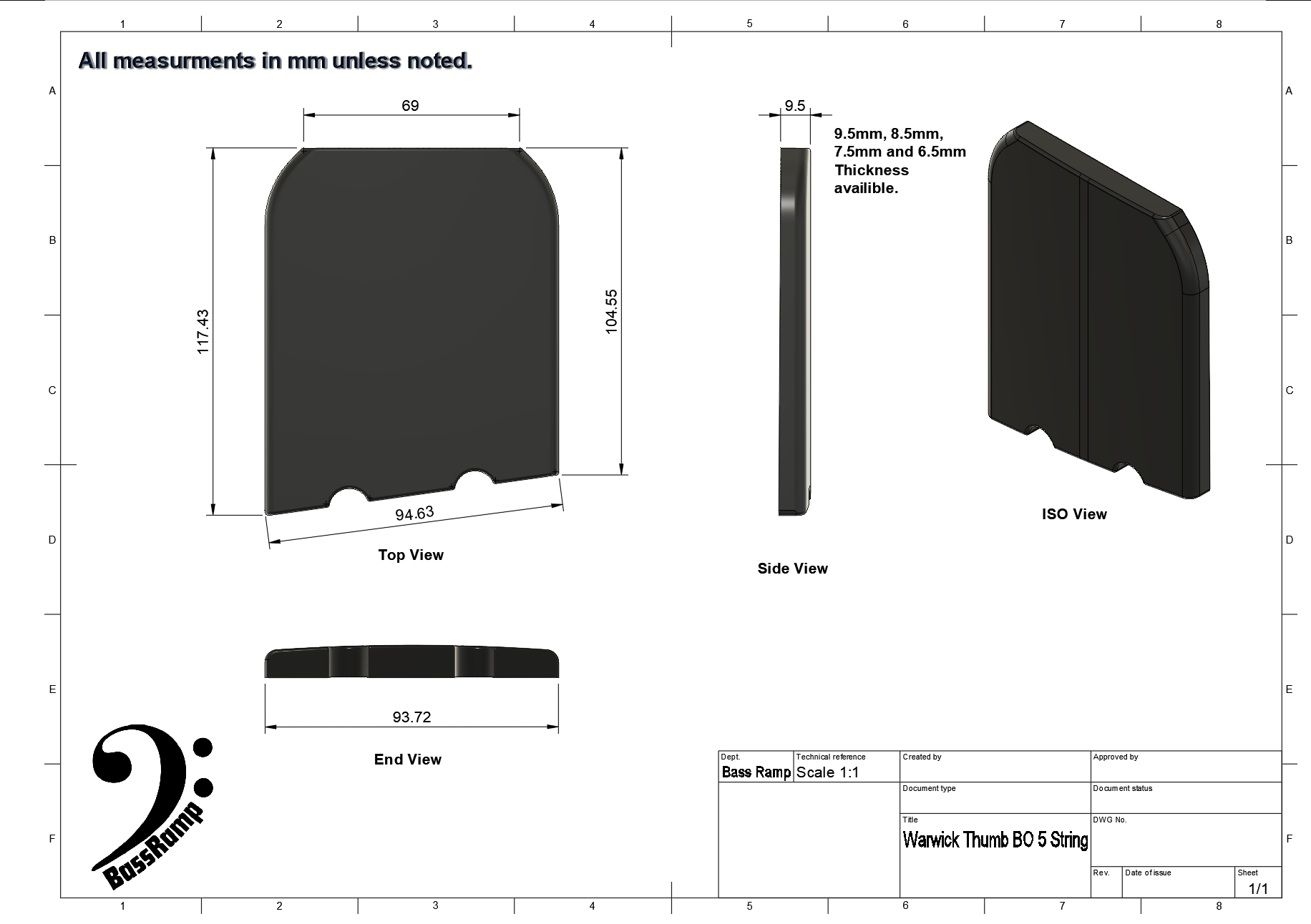 Upgrade your playability with a custom-fit bass finger ramp designed specifically for the Warwick Thumb BO 5 string bass. This ramp is made to fit perfectly in the space between the neck pickup and the bass neck, giving you a smoother and consistent playing surface. Crafted using high-quality 3D printing technology, this ramp offers a precision fit.